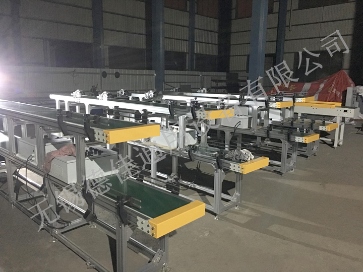 流水線運轉(zhuǎn)有:輸送機、皮帶輸送機、鏈板輸送機、爬坡輸送機以及伸縮輸送機等。